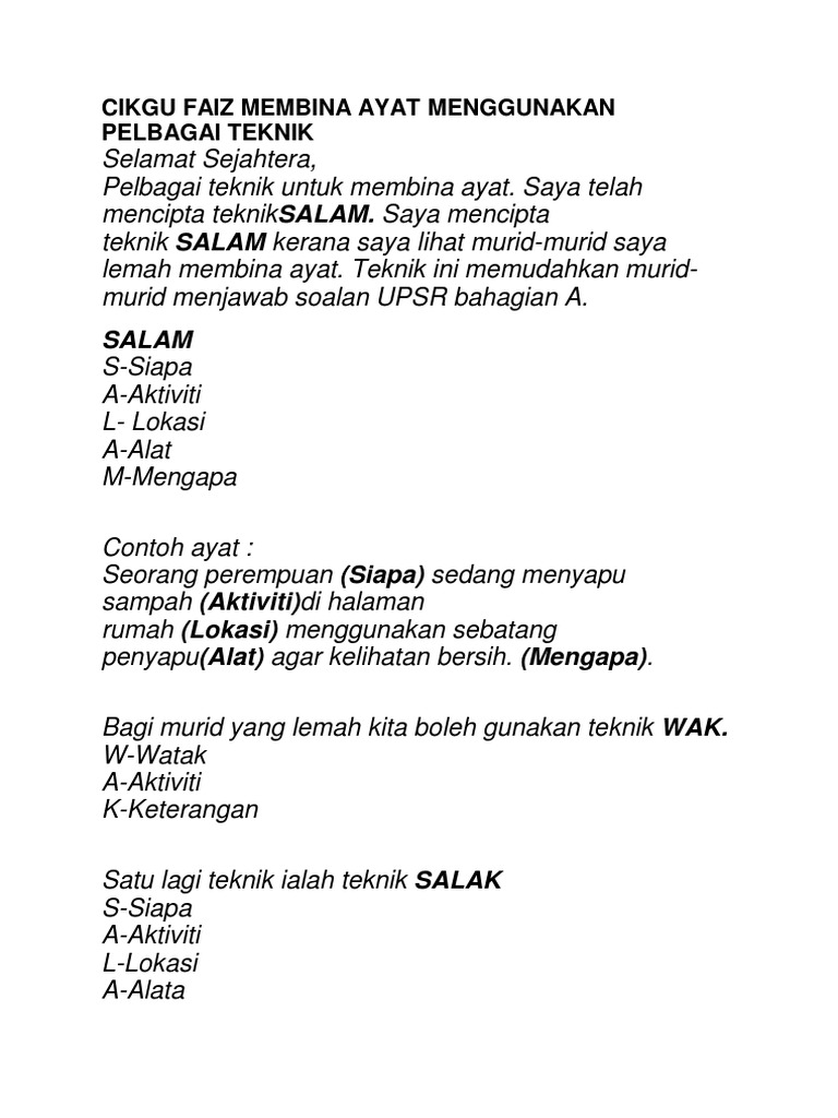 Cikgu Faiz Membina Ayat Menggunakan Pelbagai Teknik Pdf
